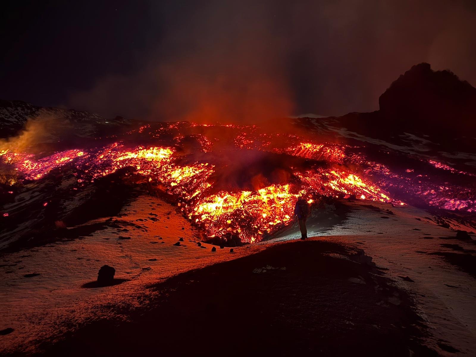 Le rendez-vous est fixé à 15:00 pour le briefing. Nous partirons de Pietracannone à 15:30 pour rejoindre la coulée active à la tombée de la nuit, quand le rouge del magma est le più spectaculaire.